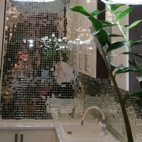 Использована серебряная квадратная зеркальная плитка 18х18.